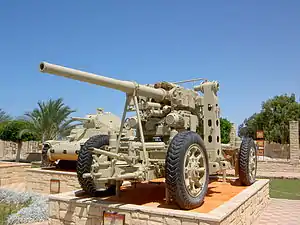 Drawing upon the German experience with the comparable 8.8 cm FlaK 18, this gun was also used as field artillery in the indirect fire role or as an anti-tank gun; in the latter role its performance was excellent, with its AP shell being able to pierce 140 millimetres (5.5 in) of armour at 500 metres (550 yd), and 120 millimetres (4.7 in) at 1,000 metres (1,100 yd),[6] some other source even quote penetration of up to 206 millimetres (8.1 in),[7] thus being able to destroy every Allied tank it could face in North Africa and in the mainland.
