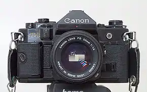 The Canon A-1 is an advanced-level single-lens reflex (SLR) 35 mm film camera for use with interchangeable lenses. It was manufactured by Canon Camera K. K. (today Canon Incorporated) in Japan from April 1978 to 1985. It employs a horizontal cloth-curtain focal-plane shutter with a speed range of 30 to 1/1000 second plus bulb and flash synchronization speed of 1/60 second. It has dimensions of 92 millimetres (3.6 in) height, 141 millimetres (5.6 in) width, 48 millimetres (1.9 in) depth and 620 grams (22 oz) weight. Unlike most SLRs of the time, it was available in only one color; all black. The introductory US list price for the body plus Canon FD 50 mm f/1.4 SSC lens was $625; the camera body was generally sold with a 30–40% discount (roughly $375 to $435).