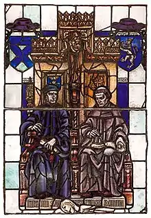 Canon Alexander Galloway (c. 1478 – c. 1552) was a 16th-century cleric from Aberdeen in Scotland. He was not only a Canon of St Machar’s Cathedral, he was a Royal Notary and Diocesan Clerk for James IV and James V of Scotland; vicar of the Parishes of Fordyce, Bothelny and Kinkell (1516-1552); five times Rector of King's College – University of Aberdeen; Master of Works on the Bridge of Dee in Aberdeen and for Greyfriars Church in Aberdeen; and Chancellor of the Diocese of Aberdeen. According to Steven Holmes,[1] he was one of the most notable liturgists of his time, designing many fine examples of Sacrament Houses across the North-East of Scotland. He was a friend of and adviser to Hector Boece, the first Principal of the University of Aberdeen, as well as Bishop Elphinstone, Chancellor of Scotland and Gavin Dunbar. He was an avid anti-Reformationist being a friend of Jacobus Latomus and Desiderius Erasmus Roterodamus and clerics in the Old University of Leuven. Along with Gavin Dunbar, Galloway designed and had built the western towers of the cathedral and designed the heraldic ceiling, featuring 48 coats of arms in three rows of sixteen. More than anyone else he contributed to the development of the artistry of Scottish lettering.[2] He has a claim to be what some might call "a Renaissance Man".[3]