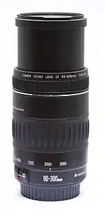 The Canon EF 90–300mm f/4.5–5.6 lens is a telephoto zoom lens for Canon EOS single-lens reflex cameras with an EF lens mount. There had been versions available: one standard version and one with USM.