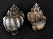 | Two views of a shell of Cantharus tranquebaricus (museum specimens at Naturalis Biodiversity Center) | |