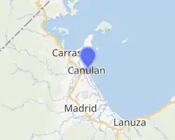 Cantilan is the second northernmost municipality of CarCanMadCarLan and so also the second northernmost municipality of the province. The neighbouring municipalities are Carrascal in the north-west and Madrid in the south-east.
