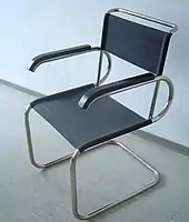 With the creation of his Wassily Chair in 1925, Marcel Breuer holds the distinction of first using bent and polished tubular steel as both a supporting framework and a decorative element for furniture. A year later, however, it was Mart Stam who was awarded the European patent for the cantilever chair.[1] It's been suggested recently, that Mart Stam might have been inspired by a cantilever tubular steel seat seen installed in a 1926 Tatra T12 two-door saloon car.[2]