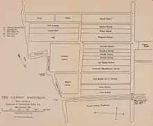 The area was bound on the north by Thirteen Factory Street, on the west by Pwanting Street, and on the east by a small creek. Old China Street, New China Street, and Hog Lane divided the groups of factories from one another and were lined by retail stores selling a wide variety of Chinese goods. Peter Parker's hospital was located at 3 Hog Lane.[19]
