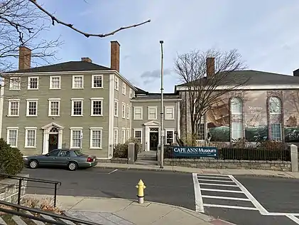 Cape Ann Museum is an art and historical museum located in Gloucester, Massachusetts. Its collection and programming focuses on the artists and art colonies of Cape Ann, including the Rocky Neck Art Colony and the Folly Cove Designers. The museum's collection also features objects from Gloucester's fishing and maritime history, and granite quarrying history.[1]