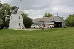 Cape Cod Airfield is located on the former site of Camp Perkins, a Massachusetts National Guard camp which was active on the site in 1921 and 1922.[1] The airport was founded by Zenas Crocker, a World War I biplane pilot.[2] It opened with a flying circus on July 4, 1929.[3] During Prohibition, the biggest attraction at the airport was the nearby Aviation Country Club, which ran an open bar and night club. The Club was closed down by Zenas Crocker's brother - Laughlin Crocker who was the Sheriff of Barnstable County.[2] From 1929 to 1934, the Massachusetts National Guard's aviation group held its summer encampment at the airport.[4] In 1930, the Skyways Flying School, run by Crocker's friend Crocker Snow, opened at the airport. In 1935, the property was acquired by Hilma and William H. Danforth, summer residents of Oyster Harbors. The Danforths used the property as a riding stable, polo field, and automobile race track as well as for their private aircraft and added a windmill to serve as an office building. The airport was opened for commercial service on May 8, 1946 when Mrs. Danforth leased the property to John C. Van Arsdale.[3] Van Arsdale opened a flying school to take advantage of the G.I. Bill's flight training for World War II veterans. During this time, the stables were torn down and the Aviation Country Club moved to Hyannis, Massachusetts where it became an Elks Club. In 1949, Van Arsdale opened the Provincetown-Boston Airlines and eventually turned over control of the Cape Cod Airport to the Danforth's personal pilot Harry Kornhiser. Kornhiser expanded the operation to include airplane maintenance and reconditioning used aircraft for resale in addition to flight instruction. Kornhiser died in 1991 and his son Rick took over as airport manager. Under the younger Kornhiser, the airport saw gliders, blimps, and an occasional hot air balloon added to its flight operations. Kornhiser also towed advertising banners over nearby beaches.[2] On April 17, 2000, Kornhiser died in an banner-towing accident near the Norfolk Airport.[5] Laurel Kornhiser took over operations following her husband's death. In March 2003, a representative of the Danforth family informed Kornhiser that her lease would not be renewed and the airport would close.[6] In 2003, the Town of Barnstable purchased the 217-acre Danforth Property, which included the airport, for $11.2 million. The airport reopened in July 2004.[2]