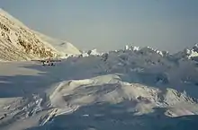 As the northernmost point of Canada, Cape Columbia is exposed to the ice drift of the Arctic pack ice. The approximately 2 m (6 ft 7 in) thick pack ice of the Arctic Ocean moves several hundred meters per day from east to west. As a result, mighty ice pressure ridges can be piled up at Cape Columbia.