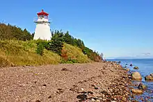 Cape George Lighthouse, built in 1950 marks the north entrance to St. Peter's Inlet which leads to St. Peters Canal.