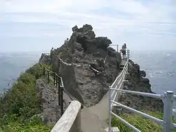 ![]() Viewpoint and shimenawa encircling rock at Cape Irōzaki | |