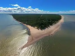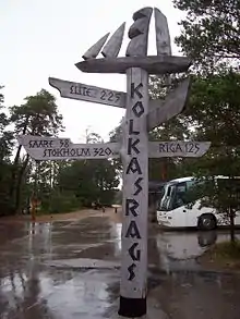 Cape Kolka (Livonian: Kūolka nanā, Latvian: Kolkasrags, Old High German: Domesnes, Russian: Колка or мыс Домеснес) is a cape on the Baltic Sea, near the entry to Gulf of Riga, on the Livonian coast, in the Courland Peninsula of Latvia. The cape is surrounded by the Irbe Strait (Irbes šaurums) which serves as the natural border with Estonia. Cape Kolka represents the north-western limit of the Gulf of Riga. East of the cape is the island of Ruhnu (Estonia) that lies in the middle of the Gulf.