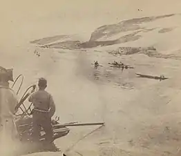 Southeast-Greenland Inuit bidding farewell to Fridtjof Nansen at Kap Steen Bille in 1888.