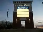The site was leased by Wal-Mart, which demolished the mall to build the first (and only, until December 4, 2013, when two Wal-Marts opened in Washington, D.C.) Wal-Mart store inside the Capital Beltway.[1][9] The new Wal-Mart opened in March 2007 and featured over 11,000 applicants for 330 jobs.[8][10] As of October 2018, both signs that advertised the mall are still standing: the one located at the entrance which had the features of the mall listed and the one located off of MD 450 that has been renovated to promote the area's new name of simply Capital Plaza. The UniverSoul circus, an attraction that begun when the mall was standing, still rents out the location to host its events. Unlike before when it rented the parking lot across the mall, it now rents the area that is fenced where the west wing of the mall once stood. Still standing near the Wal-Mart is the McDonald's, Capital One Bank (formerly Chevy Chase Bank), and an international supermarket (formerly Safeway) that were in business during the Capital Plaza Mall tenure. The former Hot Shoppes building, long vacant, was demolished on August 10, 2015. A Royal Farms gas station opened in front of the former mall property in January 2020, with additional retail, including Starbucks and Tropical Smoothie Cafe, opening later in 2020.