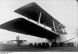 The Caproni Ca.90 was a prototype Italian heavy bomber designed and built by Caproni. When it first flew in 1929 it was the largest land-based aircraft in the world.[1]