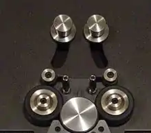 The pinch roller is a rubberized, free-spinning wheel typically used to press magnetic tape against a capstan shaft in order to create friction necessary to drive the tape along the magnetic heads (erase, write, read).