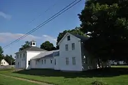 The Whitney House is set at the southeast corner of Pleasant and Sawyer Streets, opposite Sawyer Street from the Union Church. The house is a rambling structure, with a 2+1⁄2-story side-gable main block, a long single-story ell extending to the rear, which joins to a square two-story carriage house with a cupola-topped hip roof. The main facade is five bays wide, with a central entrance flanked by sidelight windows and topped by a wooden fan set in an elaborate entablature in the Federal style. The rear ell was built in two stages, the first being integral to the house construction and the second added later. The carriage house has large sliding doors on two sides, with a large hay portal over the southern entrance. The interior of the main house has retained much of its original Federal period woodwork and hardware; the rear sections have been adapted for use as display, meeting, and library spaces by the historical society.[2]