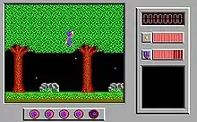 The Adventures of Captain Comic is a platform game written by Michael Denio for MS-DOS and released as shareware in 1988.[2] It was one of the first side-scrolling games for IBM PC compatibles reminiscent of games for the Nintendo Entertainment System, and it presaged a trend of shareware platform games in the early 1990s. A version for the NES was later published by Color Dreams as an unlicensed title.