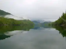 ![]() Looking up Captain Cove, Pitt Island, from Captain Point | |