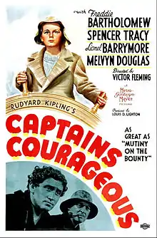Captains Courageous is a 1937 Metro-Goldwyn-Mayer adventure film. Based on the 1897 novel of the same name by Rudyard Kipling, the film had its world premiere at the Carthay Circle Theatre in Los Angeles. It was produced by Louis D. Lighton and directed by Victor Fleming. Filmed in black and white, Captains Courageous was advertised by MGM as a coming-of-age classic with exciting action sequences.