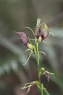 Several species of tiny orchids grow in this reserve, their leaves are so tiny as to be mistaken for a piece of grass when not in flower and often die back to a tiny little bulb in hot weather. Orchid species recorded include: Theylmitra pauciflora; Cryptostylis erecta; Calochilus paludosus and Pterostylis sp.
