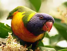 Native birds[3][4][5][6] that frequent or inhabit the reserve include the: Pied currawong; Australian magpie; Noisy miner; Laughing kookaburra; Pied butcherbird; Trichoglossus moluccanus (Rainbow lorikeet); Yellow-tailed black cockatoo; Sulphur-crested cockatoo; Magpie-lark; Koel; Tawny frogmouth; and Australian raven. Birds that once did use the site but are now recently extinct from this locality include the Superb fairy wren; Spotted pardalote and Silver-eye.