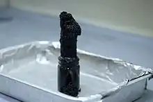 Carbon snake is a demonstration of the dehydration reaction of sugar by concentrated sulfuric acid. With concentrated sulfuric acid, granulated table sugar (sucrose) performs a degradation reaction which changes its form to a black solid-liquid mixture.[1] The carbon snake experiment can sometimes be misidentified as the black snake, "sugar snake", or "burning sugar" reaction, all of which involve baking soda rather than sulfuric acid.