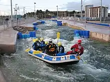 An Olympic standard white water rafting centre, Cardiff International White Water, opened on 27 March 2010 at the sports village. The 250-metre-long course, which cost £13.3 million, is the UK's first Olympic-standard pumped water canoe slalom course.[9]