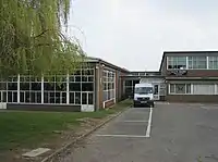 Cardiff West Community High School was built on the site of Glyn Derw High School.[5][6] Although Glyn Derw had already been closed, a fire started by arson destroyed much of the school, delaying construction.[7] The new build cost £36,000,000,[8][9] and the project was run by Willmott Dixon.[10][11] The final cost was an increase on the original government estimate of £28,000,000,[12] and a construction company estimate of £30,000,000.[11]