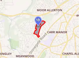 It is situated around four miles north of Leeds city centre, just south of the Leeds Outer Ring Road.