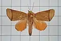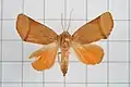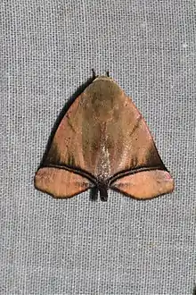 Its forewings have an axe-head shape. The caterpillar has a distinctive swollen thoracic tumidity. Tumidity is glossy green. A mottled white band runs from the thorax to the conical horn. Its horn is broad and pale green. A small white patch can be found between horn and anal claspers. Its head is red. The caterpillars live singly and are not gregarious. Larval host plants are Eugenia and Rhodomyrtus tomentosa, Campomanesia, Cleistocalyx and Syzygium cumini.[4][5]