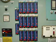 By actuating cargo valves, the person in charge can control where cargo is pumped from, where it is pumped to, and in systems that use throttle valves, can control the relative flow rates of cargo through the valves.[4] Modern cargo control rooms allow the person in charge to remotely control some or all of the valves in the cargo system and monitor the state of all valves.[4] Valve indicators are typically laid out on a "mimic panel" which displays the cargo system piping, valves and pumps in a schematic diagram.[4]