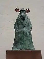 The trade mark of the museum is a bronze sculpture in front of the building by Hans Traxler. The Elch sculpture carries the names of the eight most important representatives of the Neue Frankfurter Schule, and a two-line poem by F. W. Bernstein, "Die schärfsten Kritiker der Elche / waren früher selber welche" ("The harshest critics of the moose / used themselves to be some").[1]