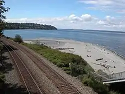 ![]() Carkeek Park beach beyond the BNSF tracks. Esplanade NW in the distance | |