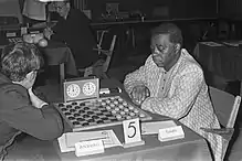 Carl Smith (right) during the WC international draughts 1972 against Andris Andreiko.