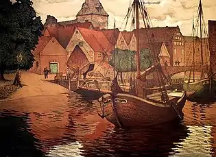 As part of the celebrations related to the golden wedding anniversary of Grand Duke Friedrich I and Grand Duchess Luise, in 1906, Langhein and several others were given professorships.[1] That same year, he was able to build a combination studio and home in Otterndorf. In 1907, he was one of the founders of the Deutscher Werkbund. Four years later, he built a second home in Otterndorf and settled there permanently.