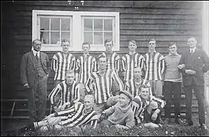 At the time of recruiting Bródy, Linde had worked hard to incorporate small neighbourhood clubs,[23] and with the help of their campaign "sports for everyone" ("idrott åt alla") IFK could field seventeen senior, junior and youth teams,[24] a Scandinavian record.[2] The membership numbers also increased, and IFK was at the time one of the largest clubs in Europe in terms of members with 1,100.[25]