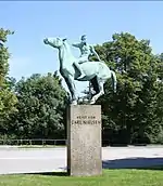 The Carl Nielsen Monument, located at the corner of Grønningen and Store Kongensgade in central Copenhagen, Denmark, is a monument to Danish composer Carl Nielsen created by his wife Anne Marie Carl-Nielsen. It depicts a young man playing pan-pipes on a wingless Pegasus and is also known as The Genius of Music (Danish: Musikkens Genius). The original plaster model is owned by the Carl Nielsen Museum in Odense.