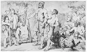 After his father died in 1828, he was forced to find employment as a teacher at the Royal Central Gymnastics Institute, which provided housing. It was there that he first met Ling. He was also exposed to the drawings of Fredric Westin, with whom he began to study that same year. In 1829, after leaving military service, he was able to enroll at the Royal Swedish Academy of Fine Arts. During this time, he also received support from Fredrik Boije, the publisher of an artistic journal. Boije also taught him etching. He later produced lithographs, including a series of twenty-four historical scenes with text by Karl August Nicander.[1] He also did illustrations for Fritiof by Esaias Tegnér. His preoccupation with graphic work made Westin remark that he was not developing a good sense of color.[2][3] In response, he focused on watercolor techniques.