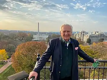 In 1982, Carleton Varney served as curator for the restoration and decoration of the USS Sequoia, the presidential yacht.[29] In 2011 he reviewed and was interviewed regarding Monticello's Dining Room restoration.[30] His client list of White House first ladies for state dinner favors, china designs, scarves and First Lady Suites for The Grand Hotel includes Lady Bird Johnson, Nancy Reagan, Jacqueline Kennedy, Rosalynn Carter, Barbara Bush, and Laura Bush.[31][32] Under the Carter Administration, he styled White House state luncheons and dinners and served as the color consultant for the Carter Presidential Library in Atlanta.[33] In 2018 he was nominated as member of the National Council on the Arts[34] and he is currently on the National Council of the White House Historical Association.[35]
