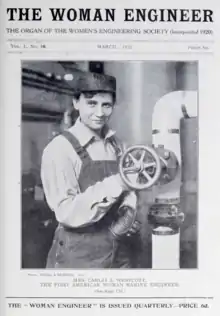 Carlia S. Westcott was the first woman to receive a license in Marine Engineering in the US, December 1921. She was highlighted on the cover of The Woman Engineer after the New York Times covered her. She was from Seattle, Washington.[1][2][3][4]