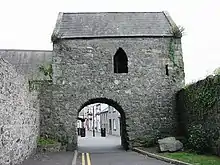- Town Wall. Established by charter in 1326 by Edward II to the Bailiffs of Carlingford it allowed them to levy murage for its building. Not much remains however but the little that does has some externally splayed musket loops that would indicate the arrival of firearms to Ireland in the late 15th century. It is likely that the wall had an external ditch to strengthen its defences. Its purpose was to serve as a barrier to ensure that goods entering the town had to pass through a town gate (and hence could be taxed) but it also had the purpose of creating a boundary between Gael and Norman.