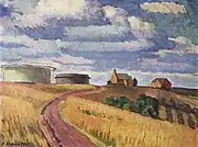 Carlingford was a favourite spot for the Northwood Group of landscape painters. In the 1930s-1940s this social group would gather to paint outdoors and included Lloyd Rees, Roland Wakelin, John Santry, Marie Santry and George Lawrence.[51] Wakelin completed a number of paintings inspired by the district. Three include: Carlingford Pastoral (1935) incorporates built heritage elements of the Mobbs Hill landscape – two water reservoirs, St Paul's Church and the church hall; Afternoon, Carlingford (1949) inspired by Carlingford hills, houses and farms; similarly, House at Carlingford (1950) was inspired by the locale's buildings and land.
