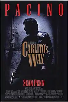 Carlito's Way wrapped on July 20, 1993, and was released on November 3, 1993.[15] Critical response to the theatrical release was somewhat lukewarm. The film was criticized for re-treading old ground,[16] mainly De Palma's own Scarface and The Untouchables.[17][18] Roger Ebert stated in his review that the film is one of De Palma's finest with some of the best set-pieces he has done.[18] Patrick Doyle was praised on his scoring of the film soundtrack, which was described as "elegiac" and "hauntingly beautiful," which "displays Doyle as one of the major talents of modern film scoring."[19] Peter Travers (of Rolling Stone) criticized the film for Pacino's "Rican" accent slipping into his "Southern drawl from Scent of a Woman", "De Palma's erratic pacing and derivative shootouts" and "what might have been if Carlito's Way had forged new ground and not gone down smokin' in the shadow of Scarface."[20]