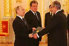 Carlos Antônio da Rocha Paranhos is the Ambassador Extraordinary and Plenipotentiary of the Federative Republic of Brazil to the Russian Federation from 2008 to 2013.[1]