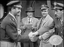 ![]() Then Major Delía shaking hands with rival Raimondo D'Inzeo of Italy, ca. 1960 | |