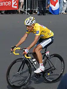Carlos Sastre Candil (pronounced [ˈkaɾ.los ˈsas.tɾe ˈkandil]; born 22 April 1975) is a former Spanish professional road bicycle racer and winner of the 2008 Tour de France. He consistently achieved outstanding results in the Vuelta a España and in the Tour de France. Sastre established himself as a strong and stable climbing specialist, and after working to improve his individual time trial skills, he became a contender for the top GC spots in the Grand Tours. In total, Sastre finished in the top ten of fifteen Grand Tours during his career, and finished on the podium of each of them. Sastre never tested positive for drugs, nor was he implicated in any doping investigation, even though he performed at the top level of cycling.[3]