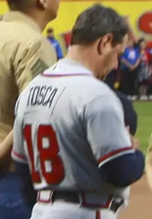 When González was hired to replace Bobby Cox as the manager of the Braves following the 2010 season, Tosca was hired to serve as the Braves' new bench coach.[3] He managed the Braves on May 10 and 11, 2013 due to González' daughter's college graduation.