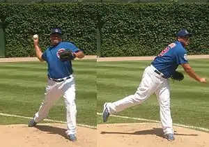 Zambrano is known as one of the best hitting pitchers of recent times.[1] He was a switch-hitter with a career .238 batting average with 24 home runs, 71 RBIs and a slugging percentage of .396. The 24 home runs are the most ever by a Cubs pitcher. He also tied with Ferguson Jenkins for the club record for home runs by a pitcher in a single season, hitting six in 2006. Zambrano was called on to pinch hit 20 times in his career and won a Silver Slugger Award three times for his hitting.[2][3]