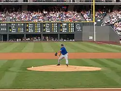 On May 7, Zambrano produced another fantastic start, permitting only 2 hits against the Colorado Rockies. Zambrano retired the first 14 batters he faced until giving up a single to Matt Holliday. Only 97 pitches were thrown on the afternoon for the victory, with Colorado managing to hit just four of them out of the infield on a breezy, cold day at Wrigley.[11] Zambrano continued his brilliance in his next start against the Dodgers, stringing together an additional eight innings without giving up an earned run.[12]