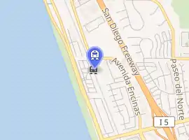 On October 7, 2013, the Amtrak Pacific Surfliner began stopping at four COASTER stations: Carlsbad Village, Carlsbad Poinsettia, Encinitas, and Sorrento Valley.[2] Amtrak dropped service to Carlsbad Poinsettia and Encinitas on October 9, 2017, due to low ridership.[3]