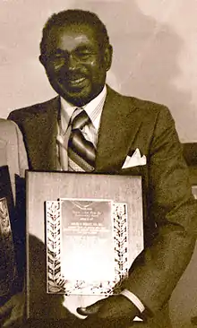 ![]() Carlton Goodlett receiving Martin Luther King, Jr. Humanitarian Award, 1977. | |